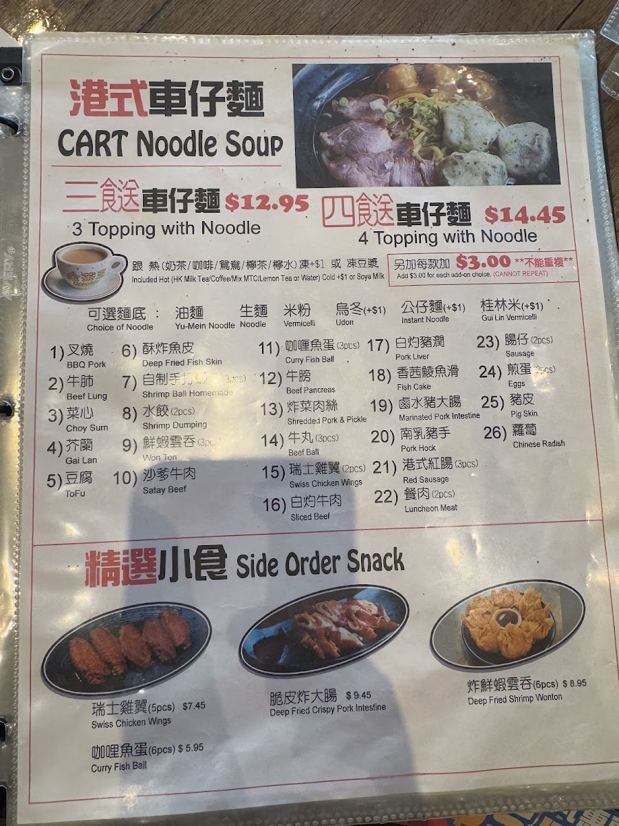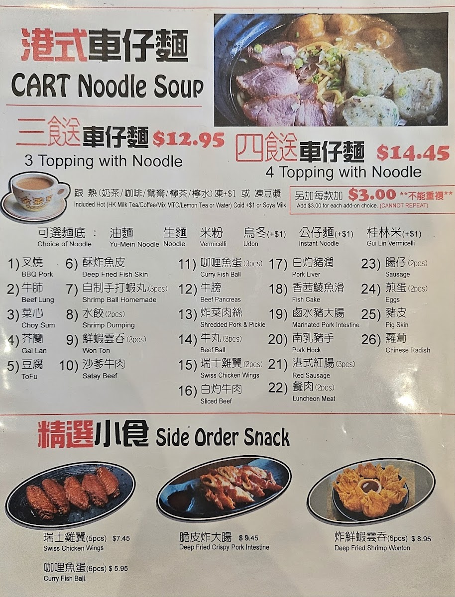 Joy Noodle Cafe 樂心餐廳 Menu